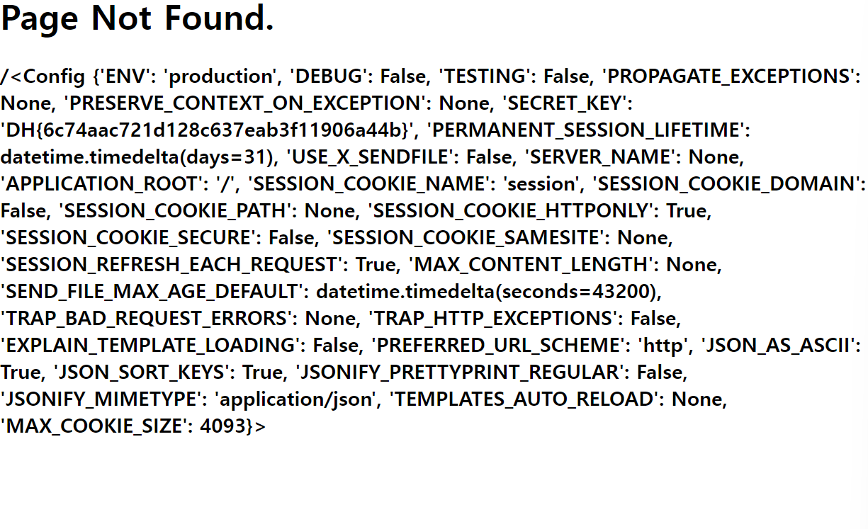 존재하지 않는 페이지 방문시 404 에러를 출력하는 서비스입니다. SSTI 취약점을 이용해 플래그를 획득하세요. 플래그는 flag.txt, FLAG 변수에 있습니다. Reference Server-side Basic
