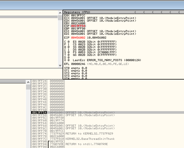 3줄 밑 PUSH에 있는 00445834가 OEP이다 ... 왜?!!?