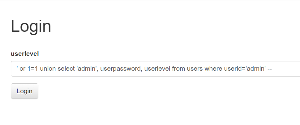 즉, userid를 입력하지 않고 userlevel 값만 입력하면 해당 값과 일치하는 레코드를 조회한다.