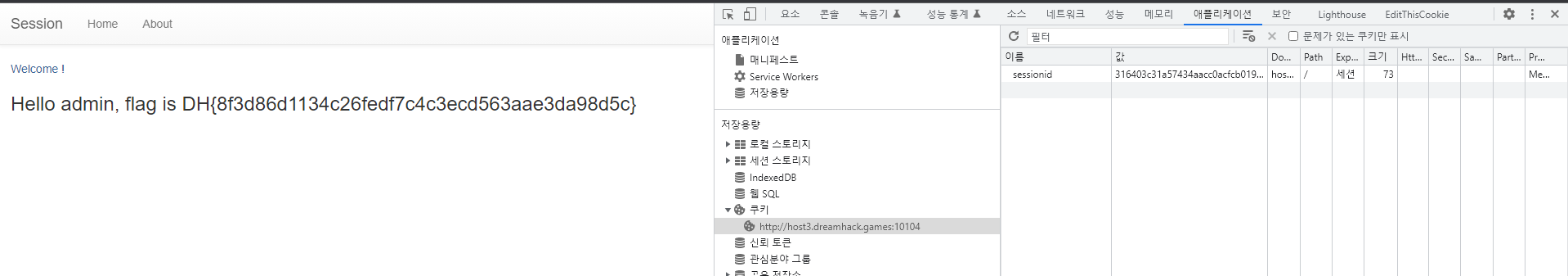 admin의 세션아이디를 바꿨더니 FLAG가 떴따 !